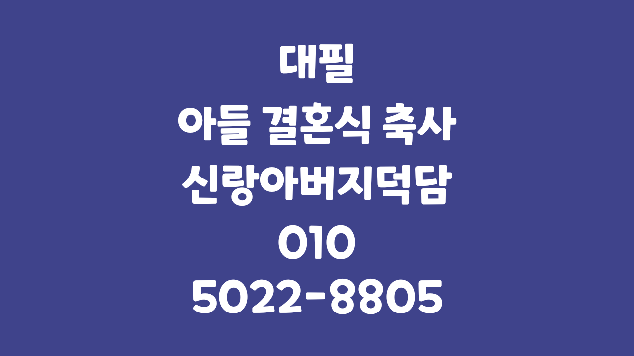아들 결혼식 축사 제대로 하시고 싶다 하시는 아버님들, 저희에게 원고 작성 의뢰 주시고 완벽한 신랑아버지 덕담 원고 받아가세요.